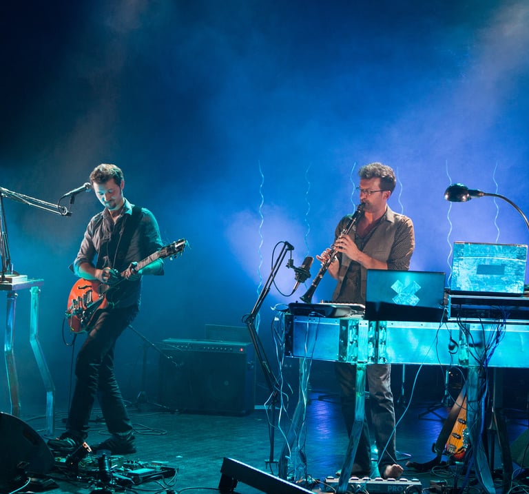 Avant de collaborer pour le jeune public, Franz Velliet et Tristan Assant ont créé le duo de pop psychédélique Radio Edith (ci-contre en concert au Train Théâtre).